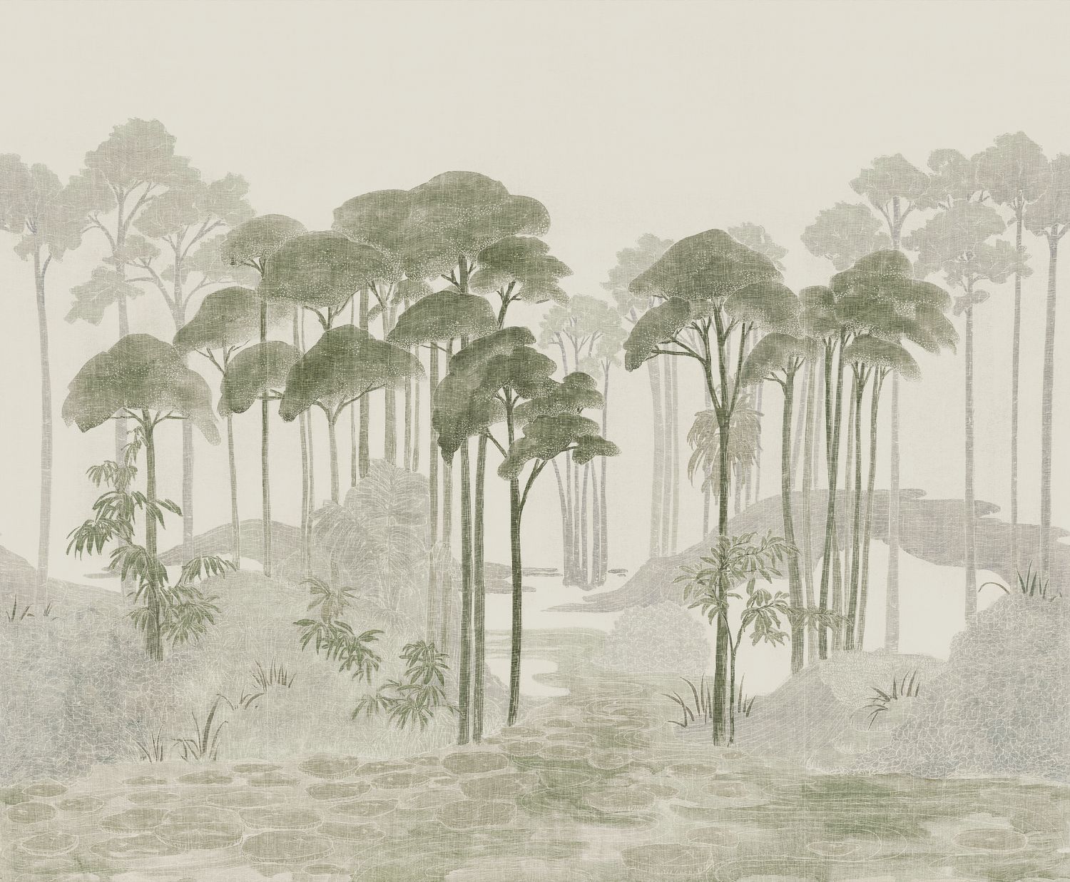 Commercial description Plant print wallpanel on linen on non-woven backing