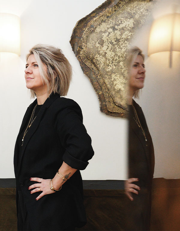 À cette occasion, Marie Jeunet renouvelle sa collaboration avec Casamance. Le taffetas MENAGGIO, aux reflets mordorés, devient une nouvelle fois le fil conducteur de la scénographie et guide subtilement le regard d’une œuvre à l’autre. Il instaure une continuité délicate, où chaque pièce trouve naturellement sa place.