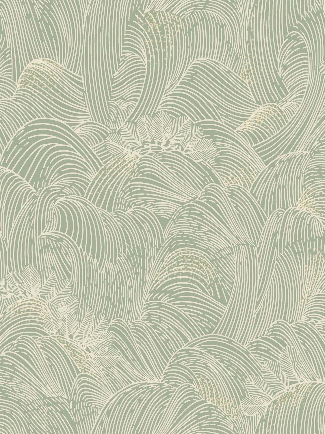 Sur un papier texturé à l’aspect fibreux, Marée haute trace à l’encre sablée l’inépuisable ressac de la mer. Immédiatement, une sensation de sel sur les lèvres et de vent dans les cheveux nous submerge. Dans cette puissante évocation de l’océan, les flots prennent des accents parfois mats, parfois métallisés, et l’écume se traduit en points délicats. Proposées en 5 coloris, les vagues s’inscrivent à l’encre sablée dorée sur fond émeraude et blanc ; et à l’encre sablée blanche sur fond bleu, ocre et vert d’eau.
