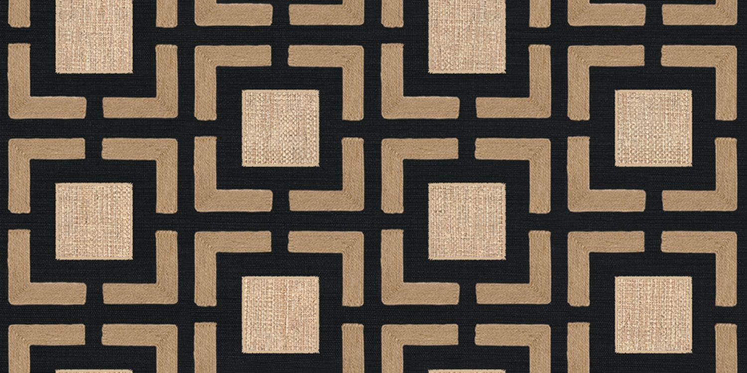 Description produit Dessin géométrique appliqué brodé sur sisal sur intissé