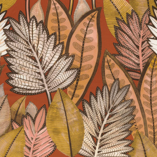 Balata est un feuillage extraordinaire couché sur un lumineux satin de coton. Feuilles de canna, d’oiseaux de paradis ou d’anthurium sont traduites dans un graphisme délicat. Les nervures gracieuses sont suggérées d’un simple trait réalisé à main levée. Chaque végétal est ourlé d’un feston, bordé d’une pluie de points subtils. Les couleurs chatoyantes, restituées par impression numérique, se côtoient dans des contrastes forts. Par petites touches, le blanc vient éclairer ce luxuriant jardin, rendant ses teintes plus profondes encore. Feuillages elliptiques, végétaux aux lignes élancées semblent onduler au gré du vent, et sur la douceur satinée de l’étoffe, offrent un tableau fascinant des jardins de Balata.
